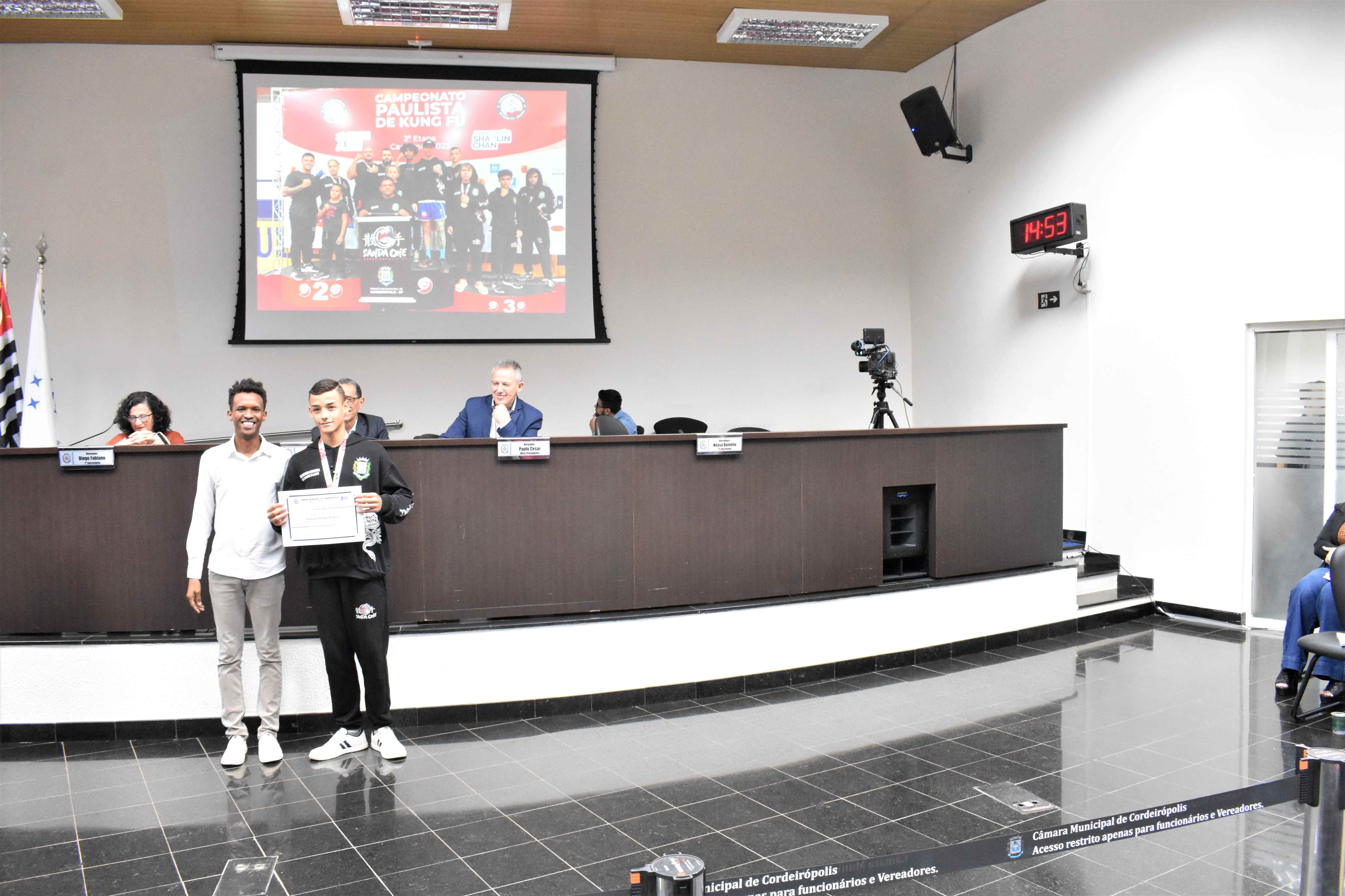 Ver. Diego Fabiano homenageia Equipe Kung Fu "Sanda One" de Cordeirópolis