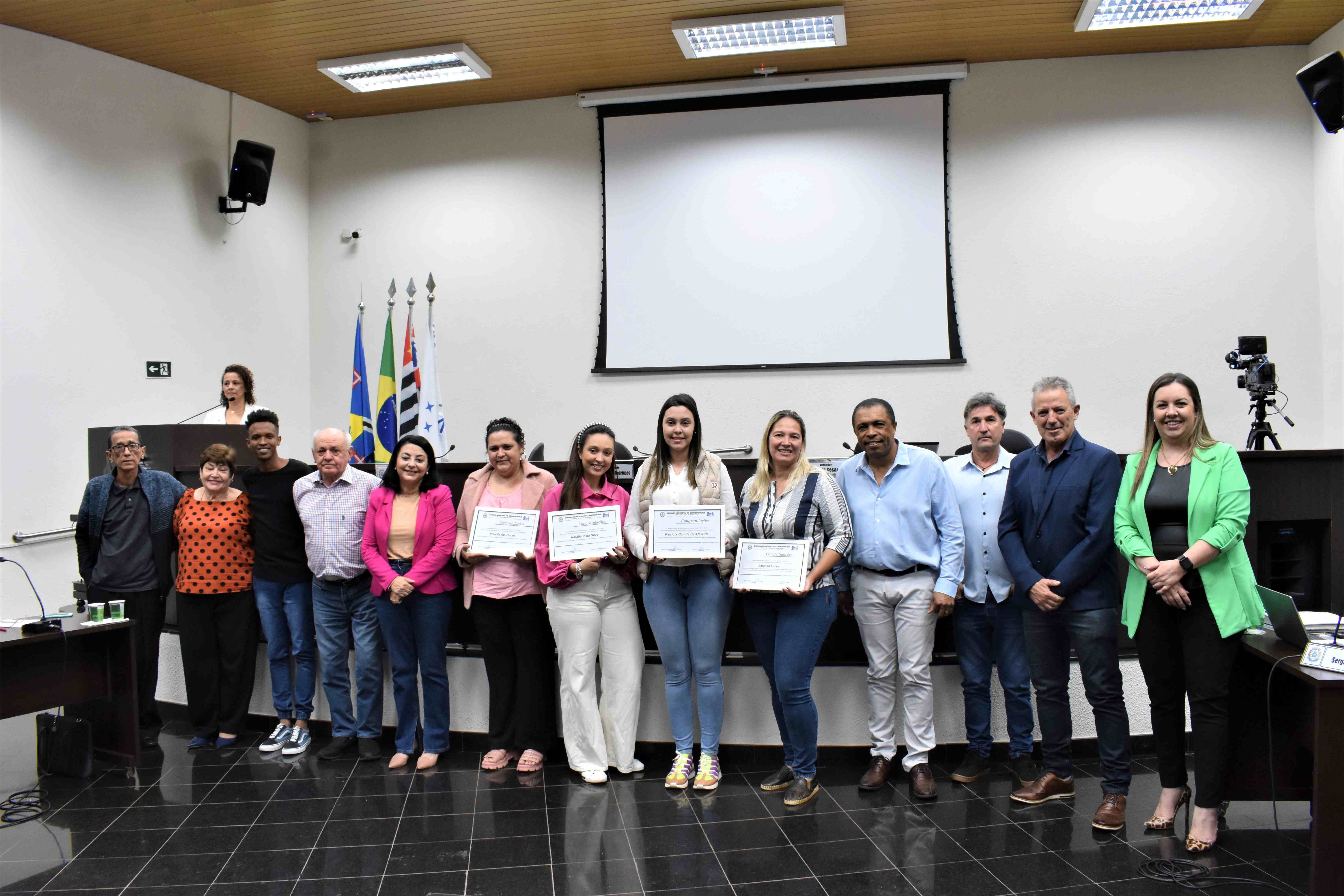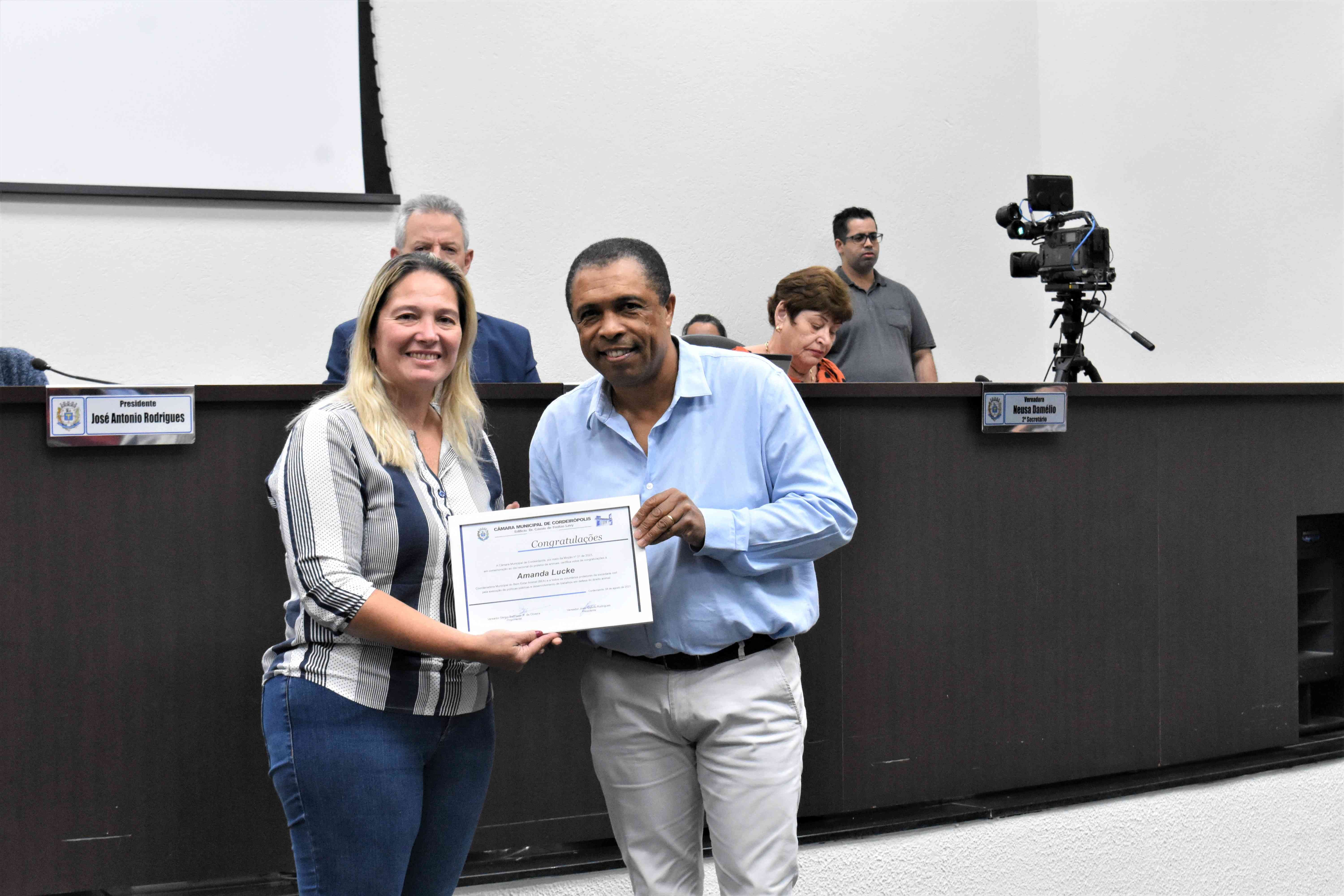 Os diplomas foram entregues à Coordenadora Mun. do Bem Estar Animal, Amanda Lucke, e as representantes da Sociedade Civil, as Protetoras de Animais: Natália P. da Silva, Priscila Ap. Burati e Patrícia Camila de Almeida, na sessão ordinária desta terça-feira (08).