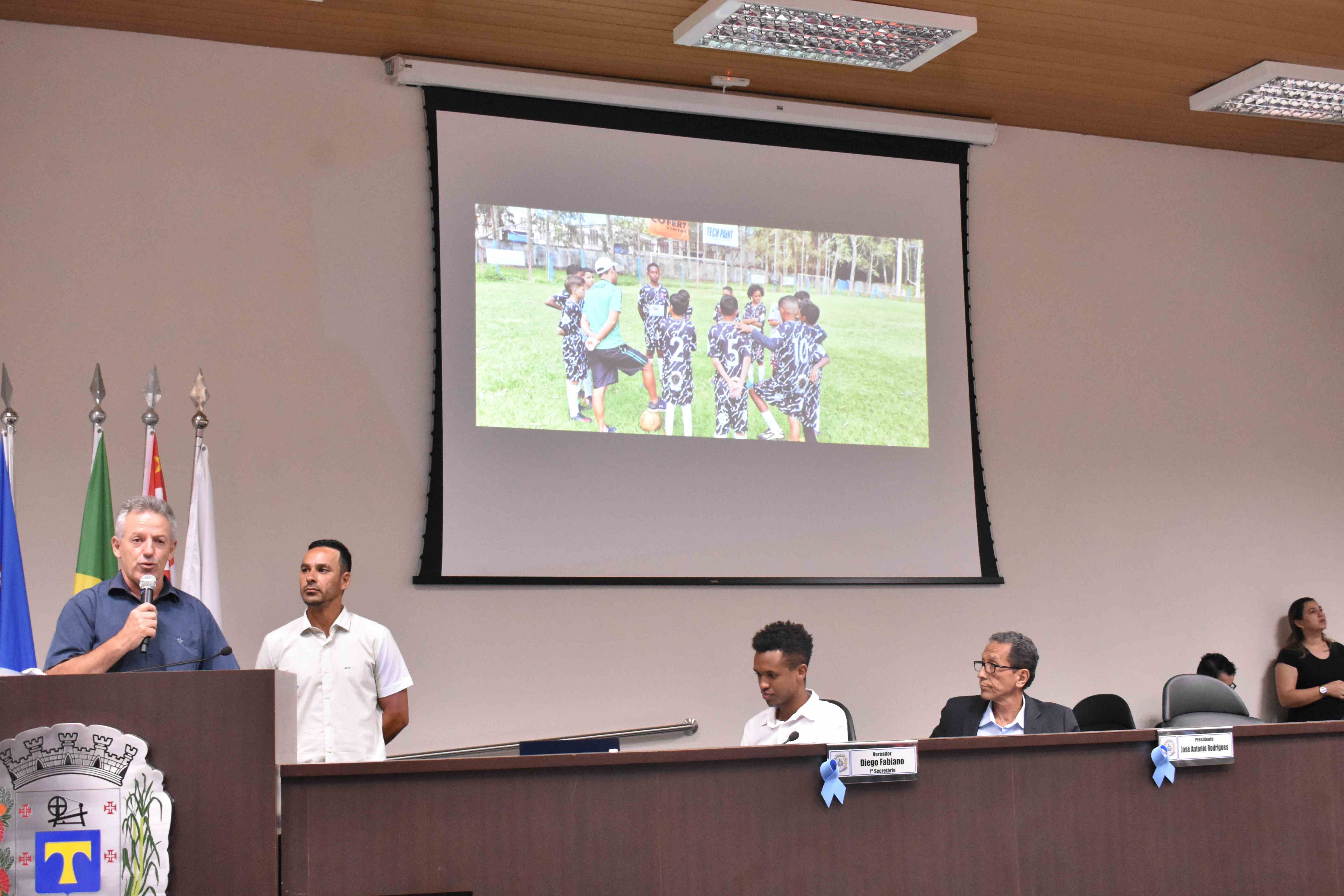 Luiz Carlos de Souza, (Luizinho como é carinhosamente chamado) recebeu a medalha “João Pacífico”, uma homenagem do vereador Paulo Cesar Morais, por seu empenho em promover socialização, disciplina, trabalho em equipe, liderança, respeito, perseverança e solidariedade através do esporte em nosso município.