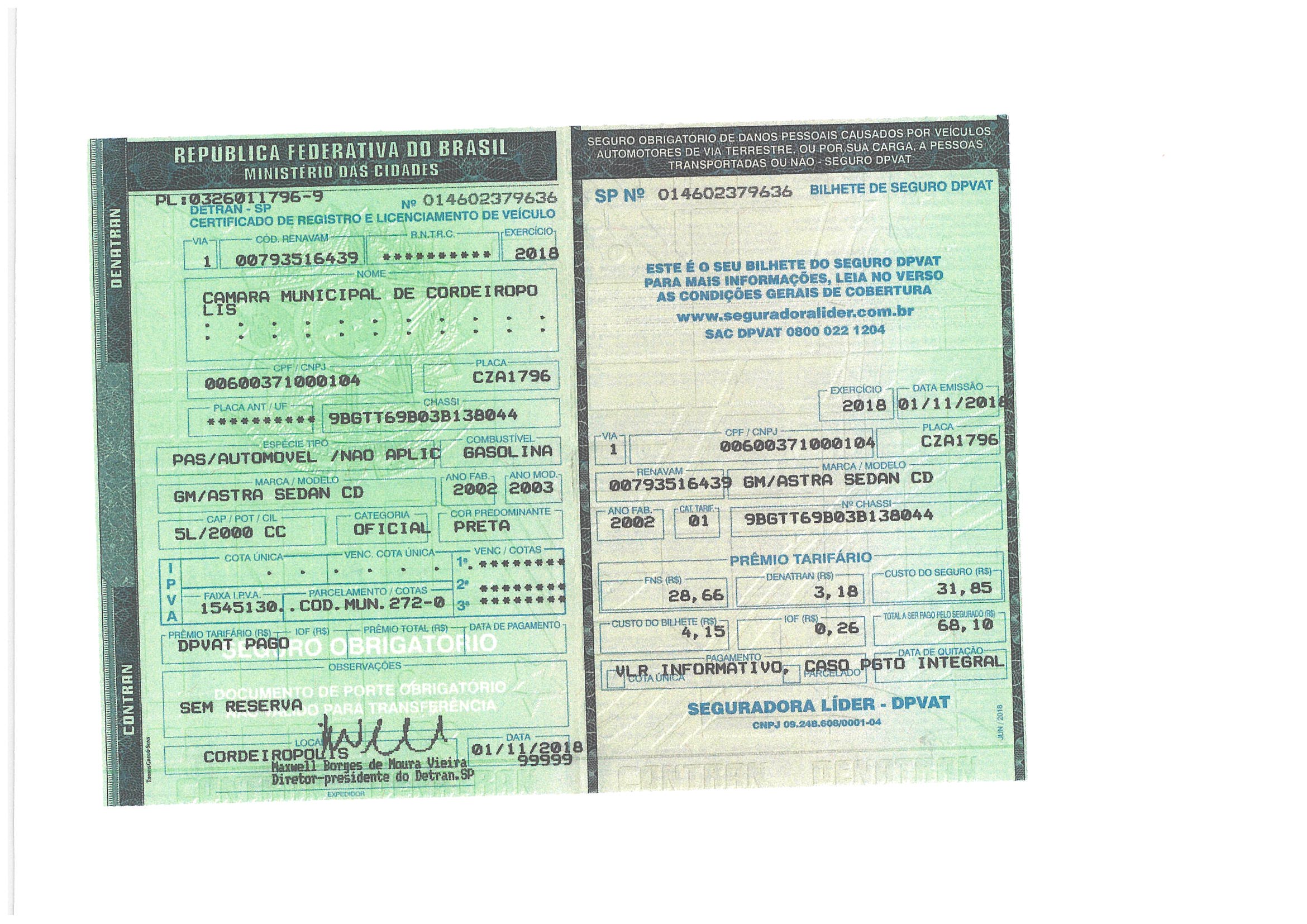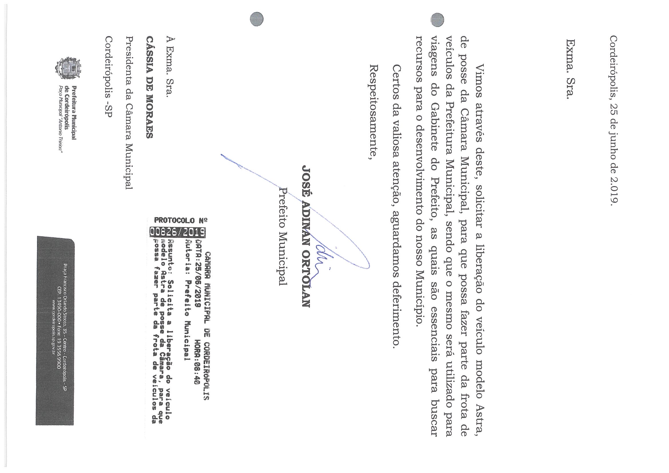 Dispõe sobre a doação, sem encargos, de veículo que menciona à Prefeitura Municipal de Cordeirópolis. Autor: Mesa Diretora 2019/2020 |